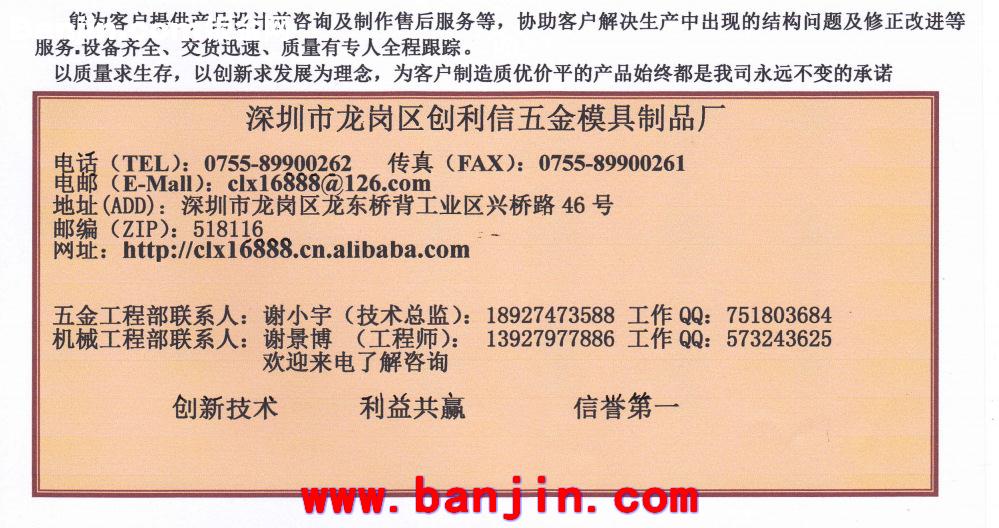 创利信精密机械零件厂是一家专业生产各种精密冲压零件、精密手机配件,电脑配件,打印机配件,汽车配件,家电五金配件,精密机械零件以承接各种精密冷冲压模具制造,加工。常年对外提供五金冲压和开模服务,同时我厂提供精密机械加工服务,主要材料有不锈钢,铜,碳钢,铝合金。我厂秉承交货及时,价格合理,服务周到的原则。诚心希望和您真诚的合作!